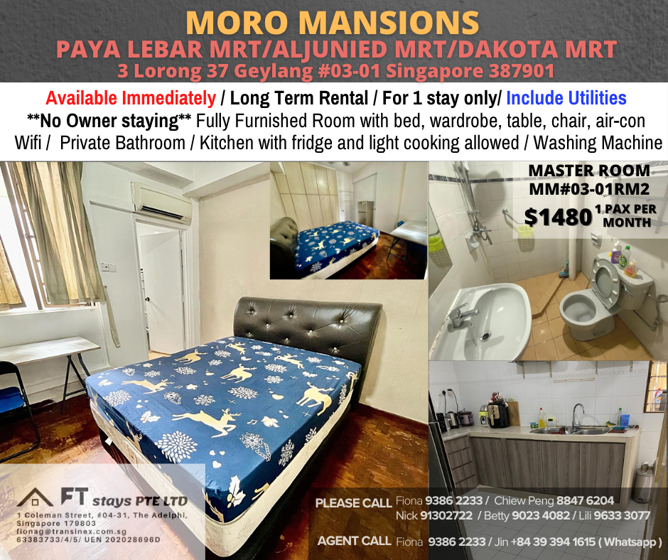 Common room/no owner staying/no agent fee/cooking allowed/near eunos mrt/near dakota mrt/paya lebar mrt/ available 03...