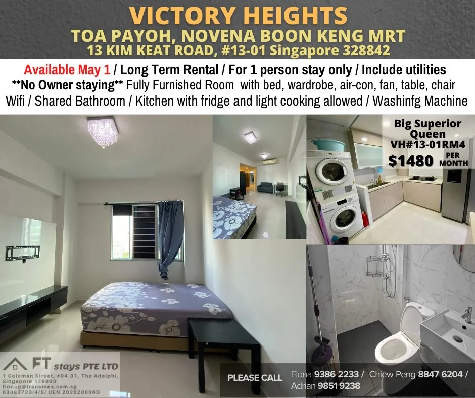 Toa payoh / boon keng / novena mrt / minimum 3 - 12 month rental / utilities included / no owner stay/ available...